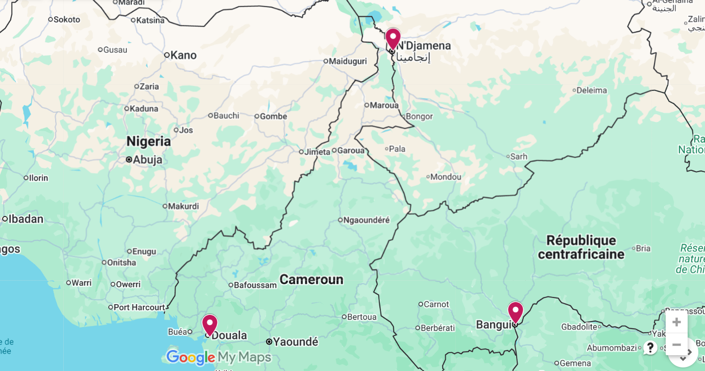 Présents au Cameroun, au Tchad et en République Centrafricaine, nous sommes à votre écoute pour répondre à vos besoins et concrétiser vos projets. Retrouvez ci-dessous nos coordonnées et la carte de nos implantations.